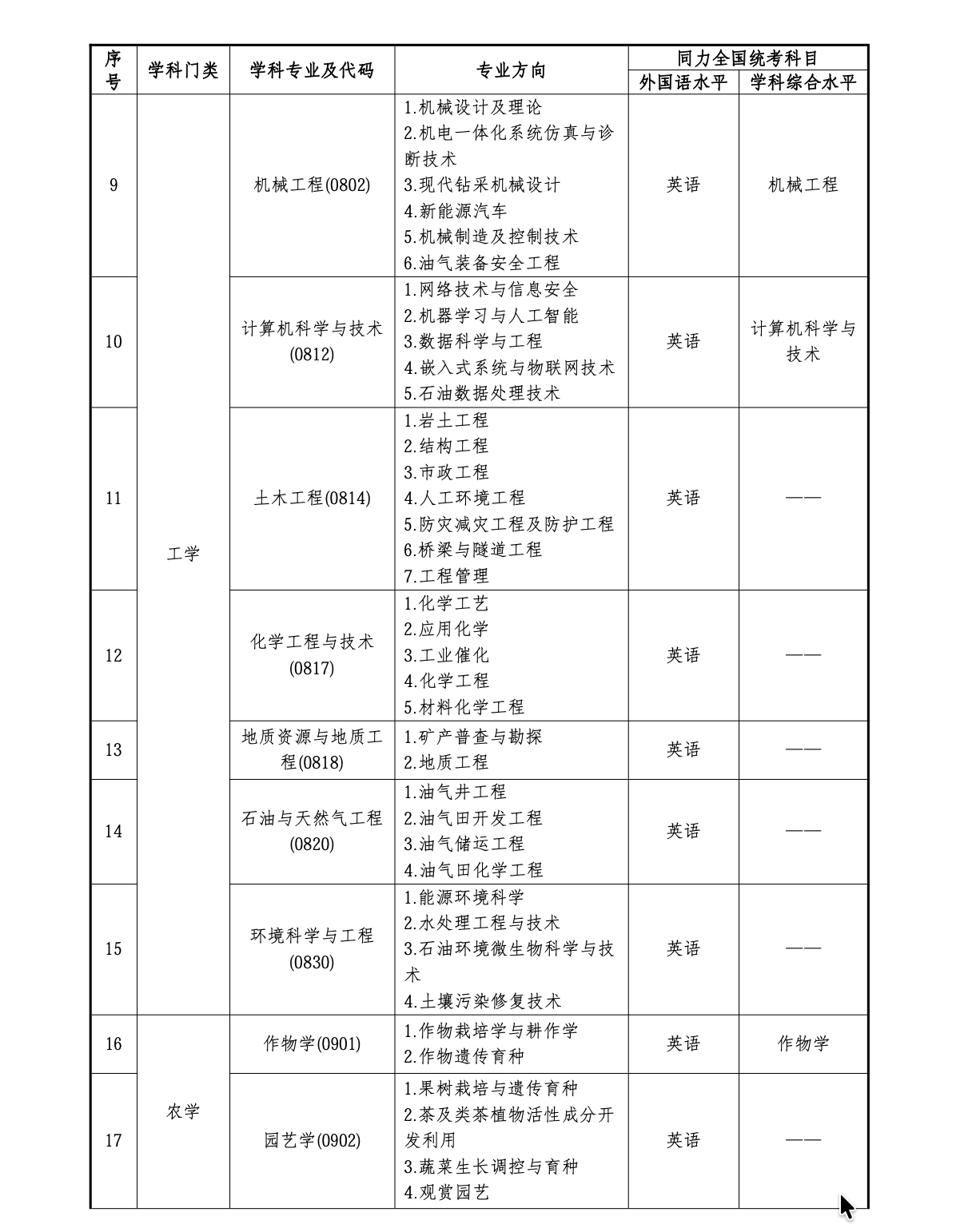 学校是博士学位授权单位,人才培养层次齐全,构建了从学士、硕士到博士的完整人才培养体系。现有“地质学”“地质资源与地质工程”“石油与天然气工程”“作物学”“植物保护”5个一级学科博士学位授权点,“地质资源与地质工程”“石油与天然气工程”“作物学”3个博士后科研流动站;35个一级学科硕士学位授权点,25个硕士专业学位授权类别。学科综合实力突出,工程学、植物学与动物学、农业科学、地球科学、临床医学、化学、环境与生态学、药理学与毒理学、材料科学等9个学科进入ESI全球排名前